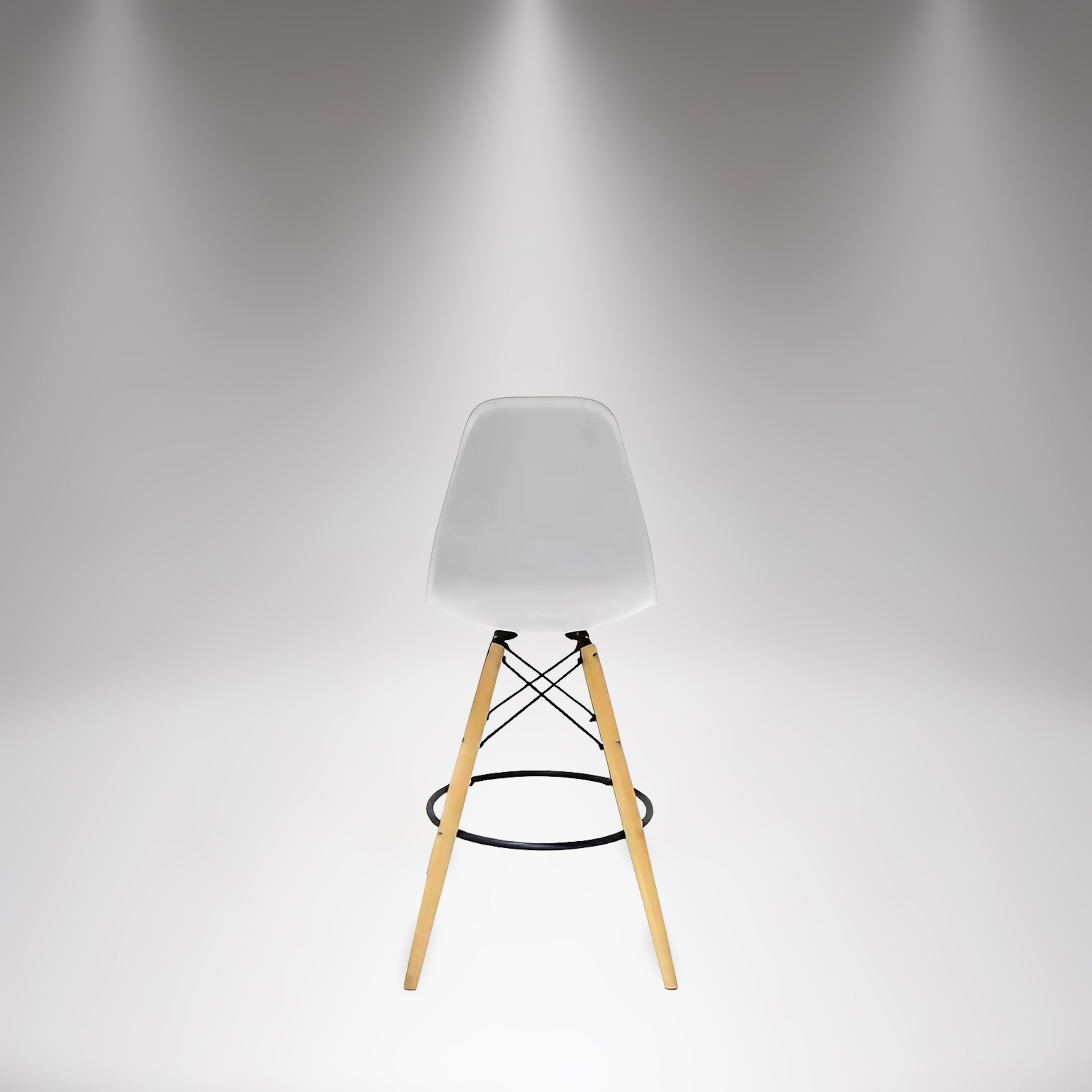 Base madeira; encosto e assento de polipropileno na cor branca.