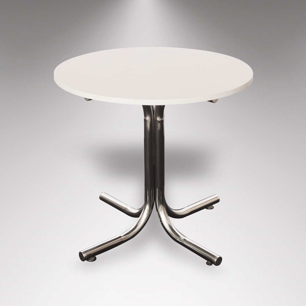 Base metálica cromada; tampo de mdf redondo 8mm.